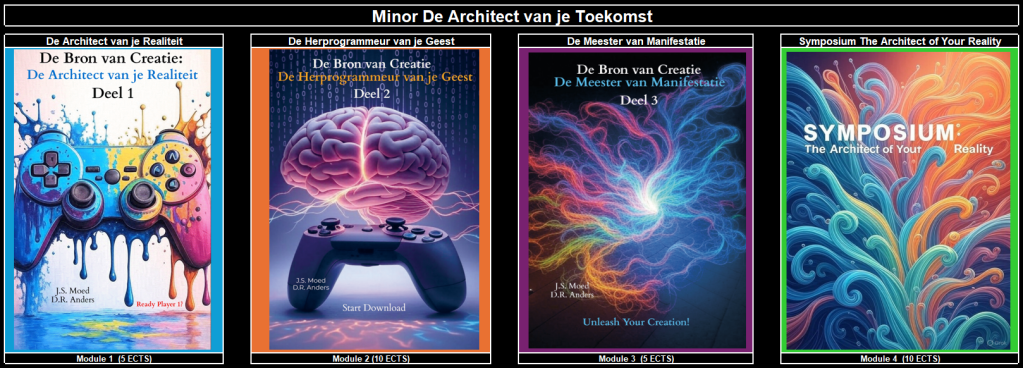 - Module 1: De Architect van je Realiteit. Deze module staat in het teken van het activeren en ontwikkelen van het (zelf)bewustzijn van studenten. Op basis van wetenschappelijk bewijs en spirituele concepten wordt uitgelegd hoe we weer in control kunnen komen over ons eigen leven, hoe we bewuste keuzes kunnen maken en hoe we onze emoties kunnen gebruiken als signalering voor innerlijk werk.